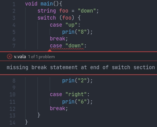 Синтаксис Vala будет очень хорошо знаком всем кто когда-нибудь видел любой C-подобный язык. Я не просто так привел первым примером копию hello world из C#. Языки крайне похожи, что может сильно упростить обучение, можно сказать вы уже знаете Vala и простенькие проги можно начать писать прочитав до этого места статьи. Знаю джависта который пришел в наше сообщество писать игровой движок в качестве хобби, по его словам он даже не заметил что пишет на другом языке.